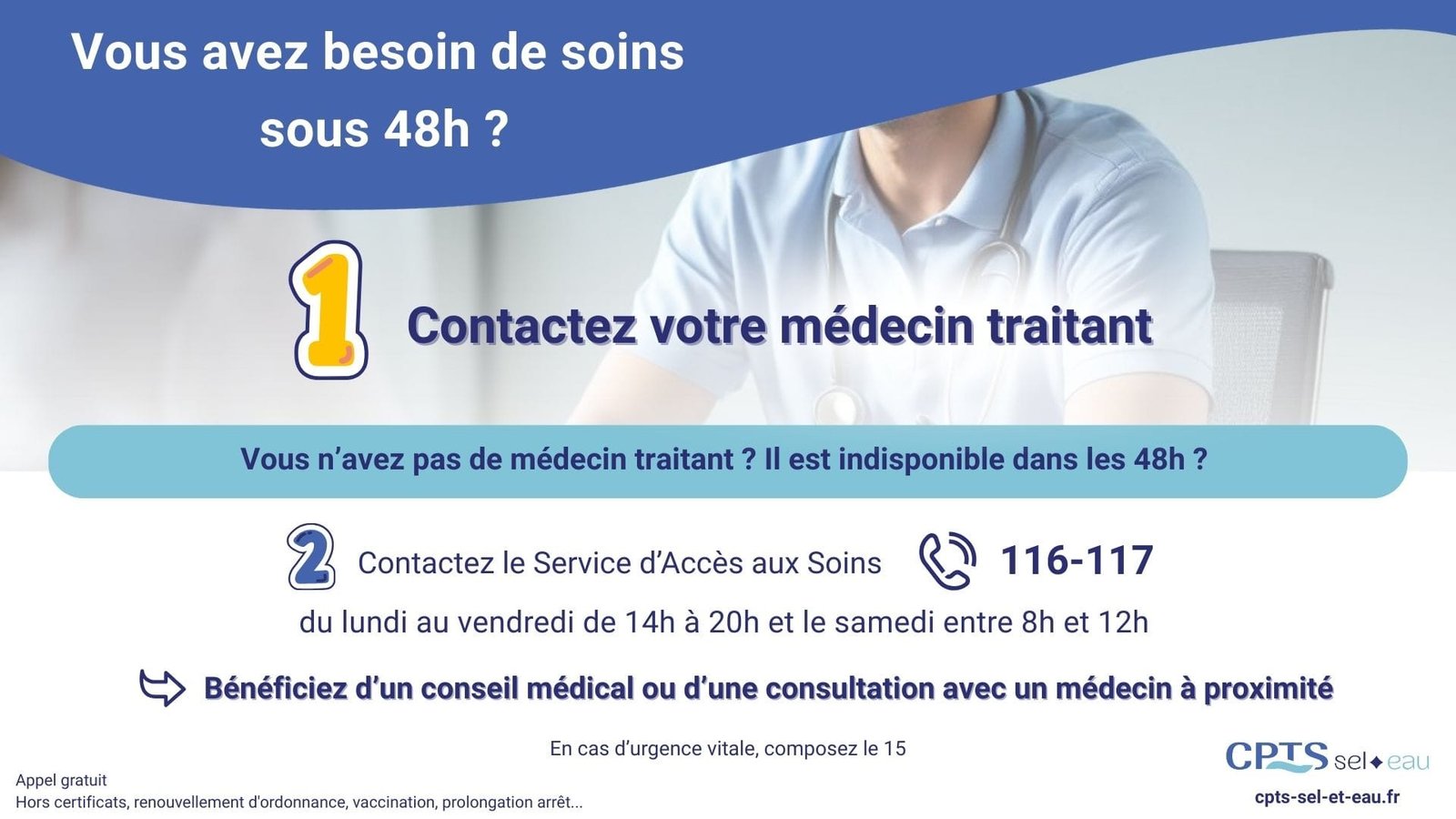 Besoin de soins sous 48h ? Les professionnels de la CPTS Sel et Eau vous accompagnent